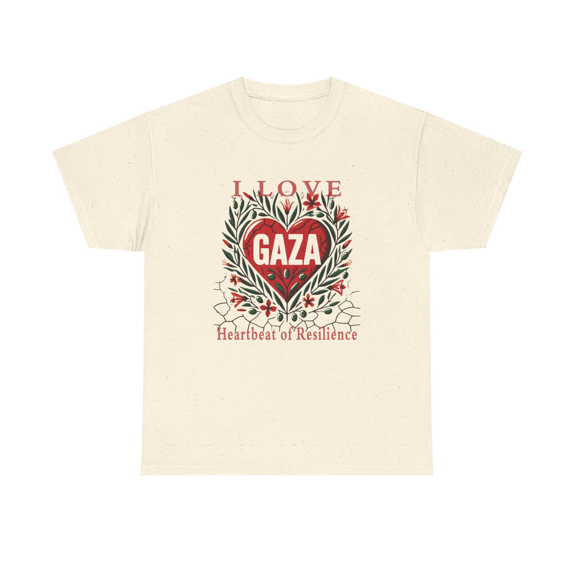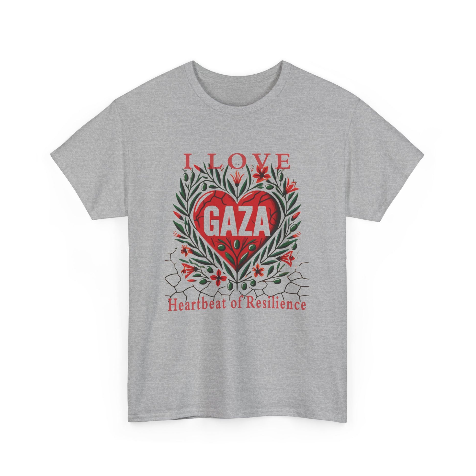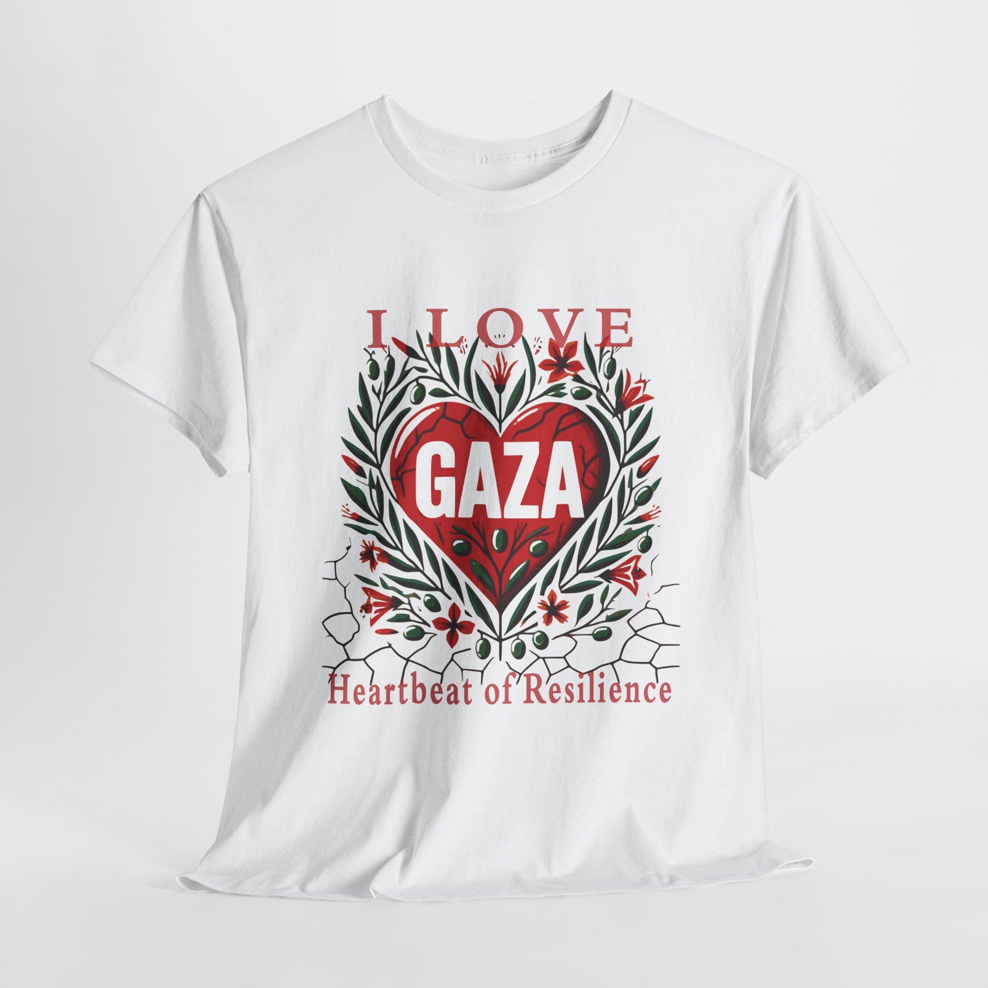 I Love Gaza, Heartbeat of Resilience, Palestine T-Shirt with Olive Branches and Flowers
