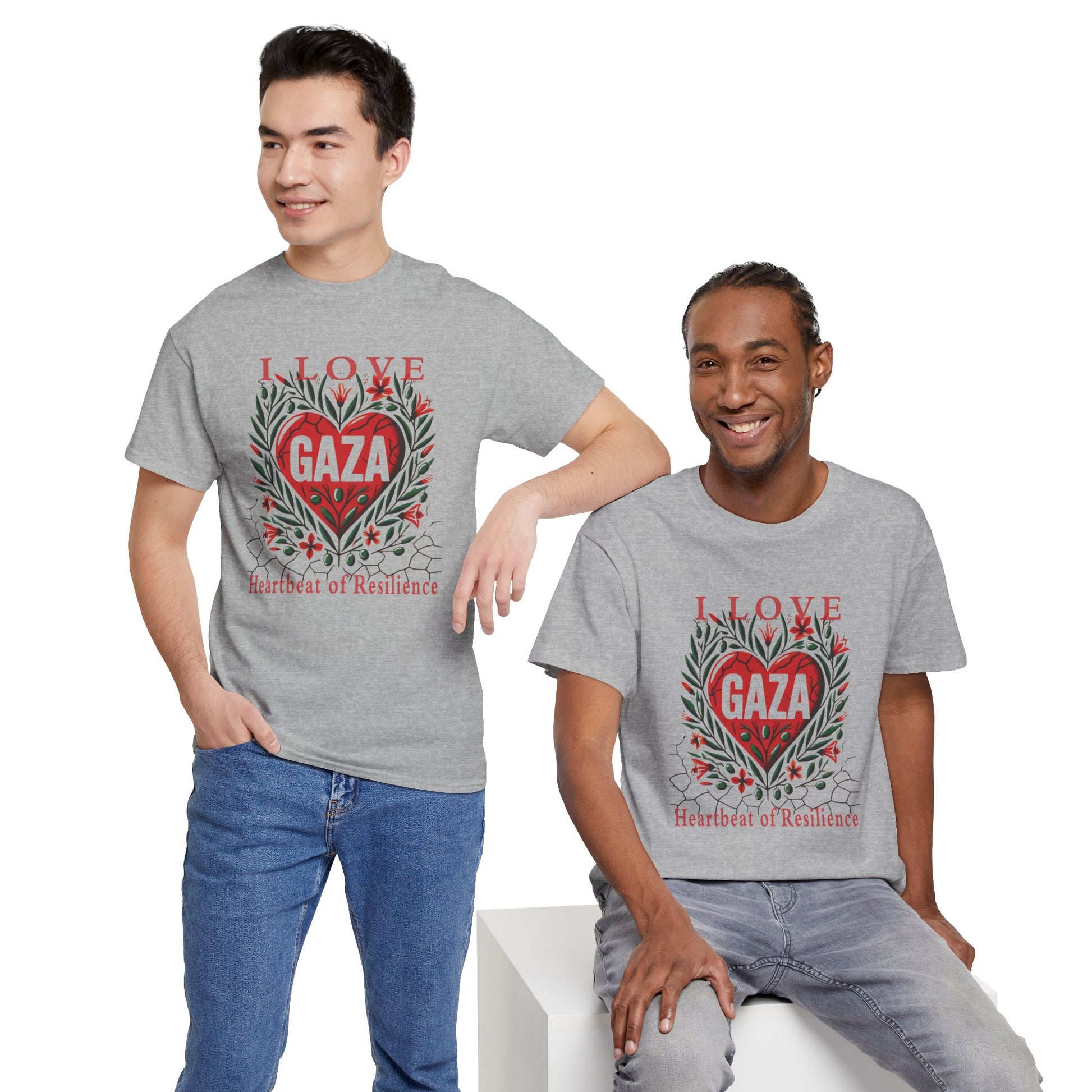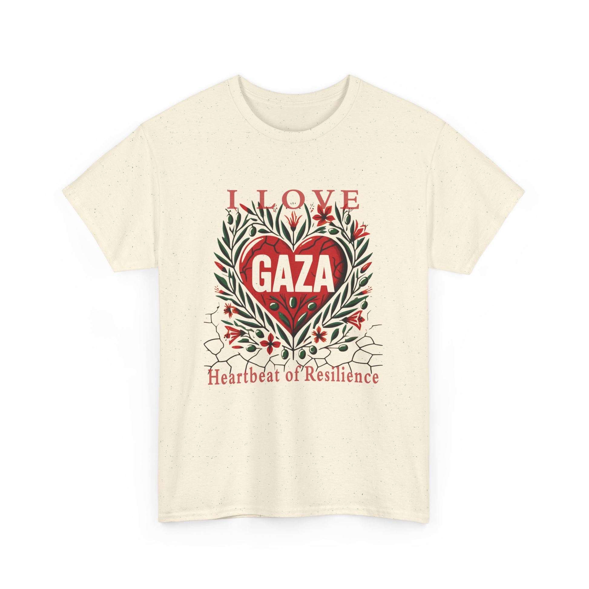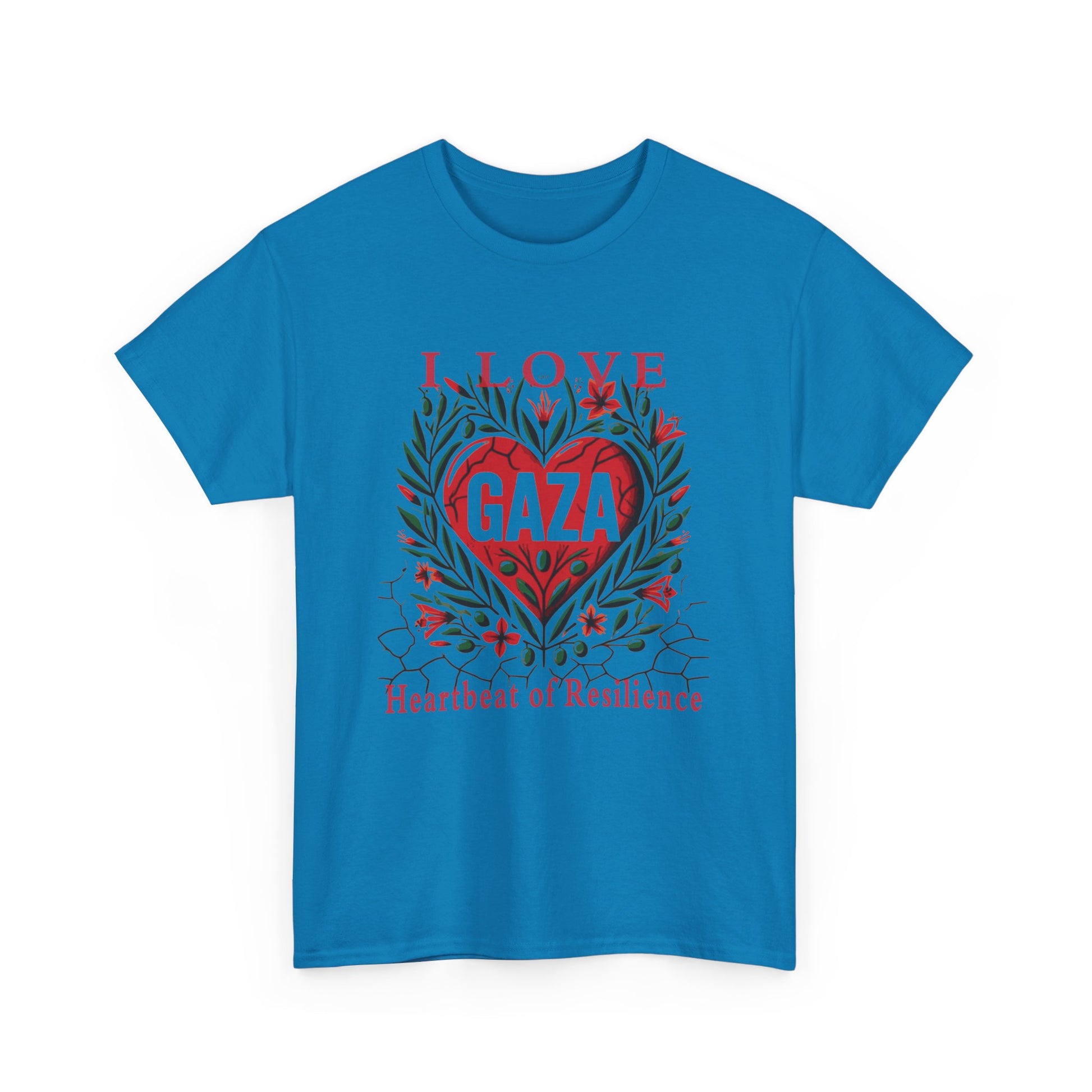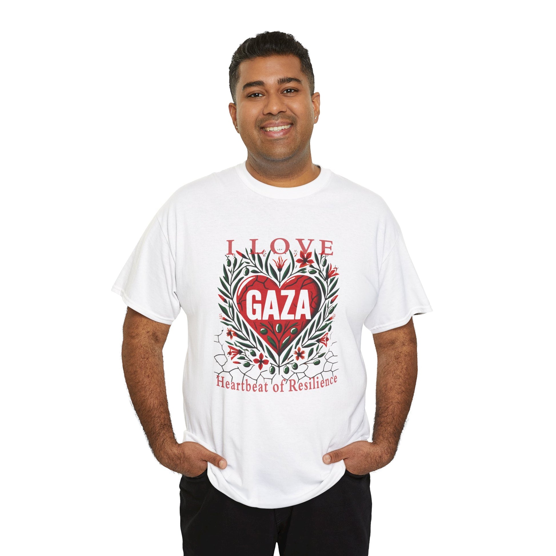I Love Gaza, Heartbeat of Resilience, Palestine T-Shirt with Olive Branches and Flowers