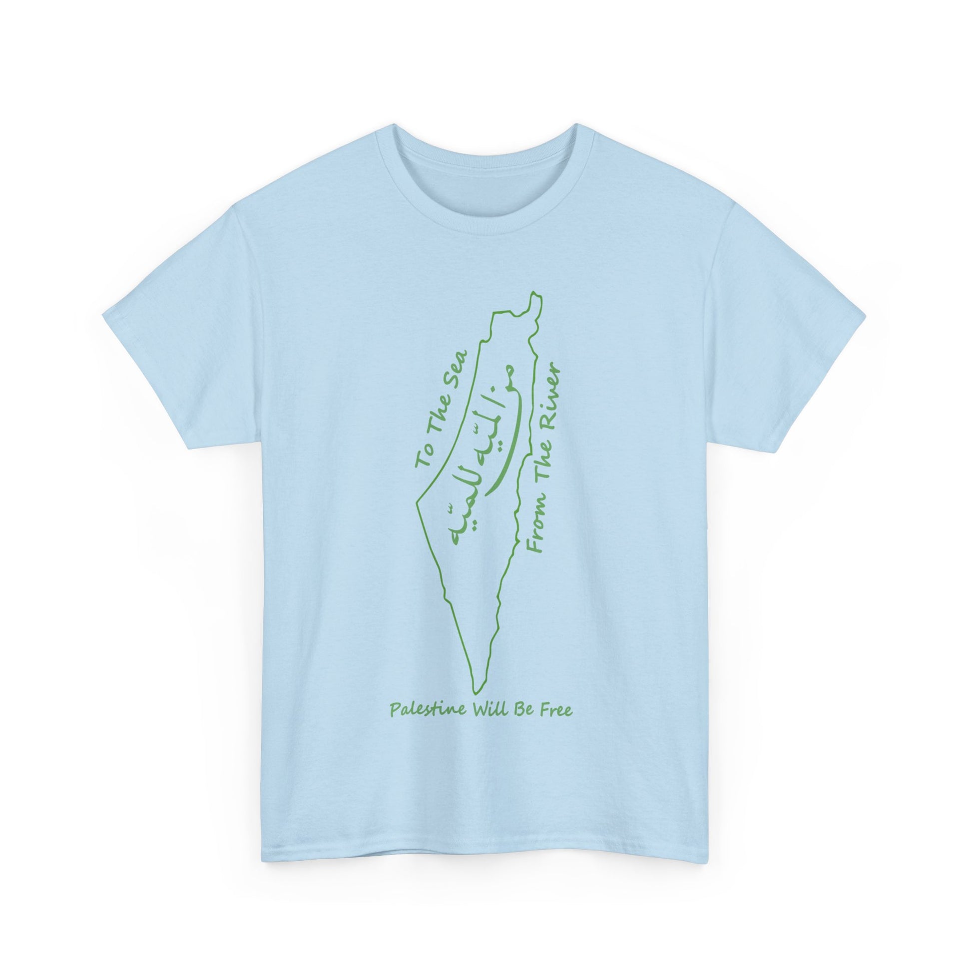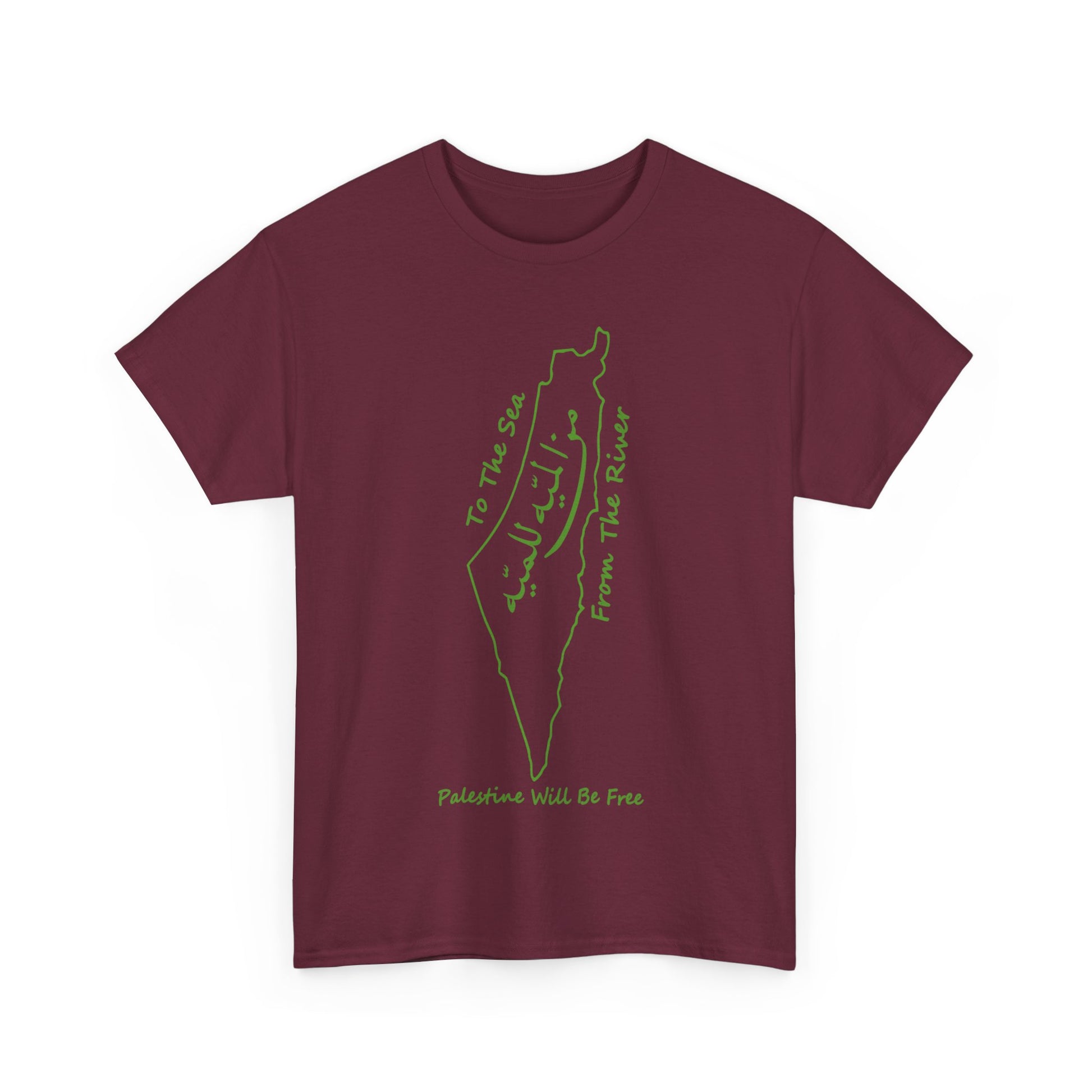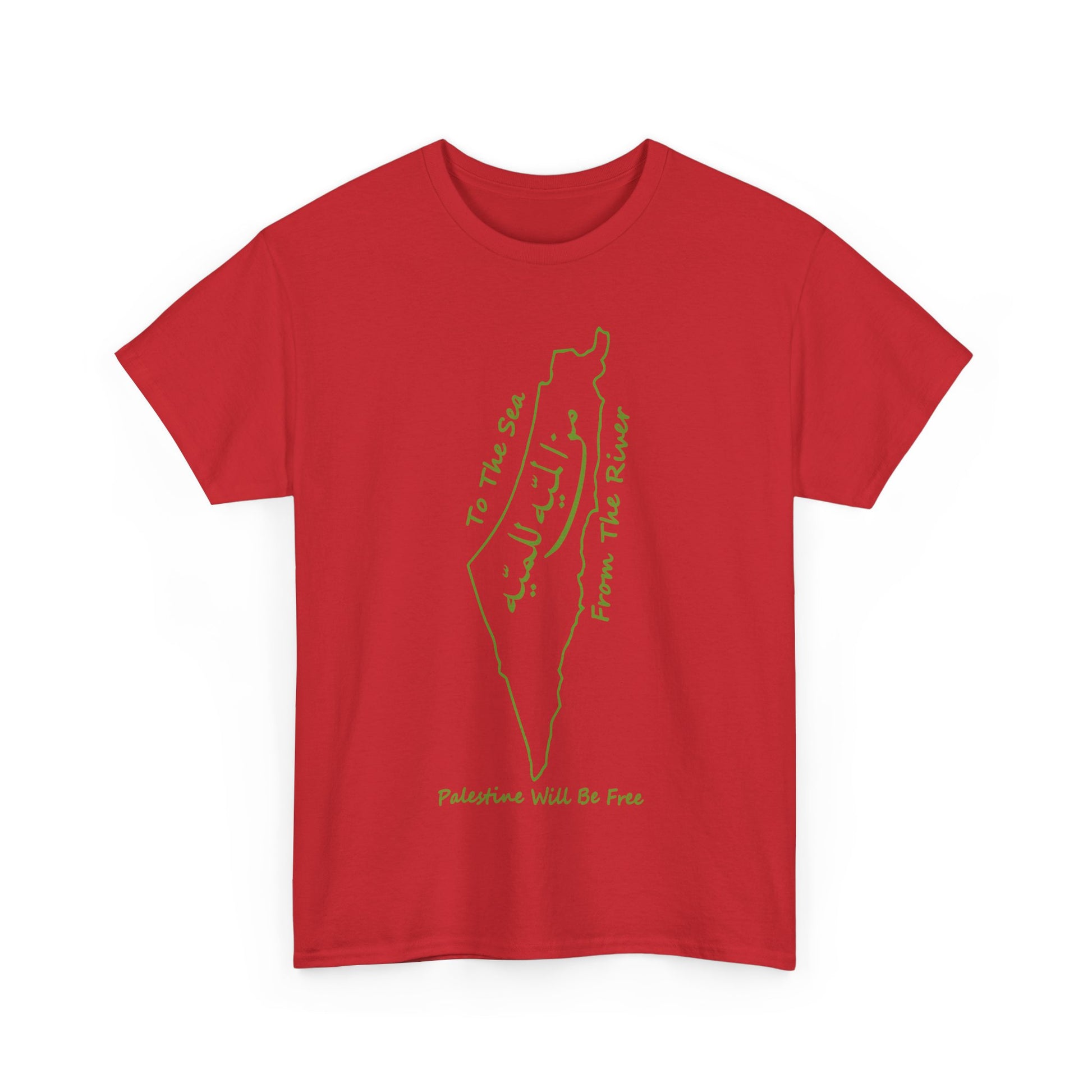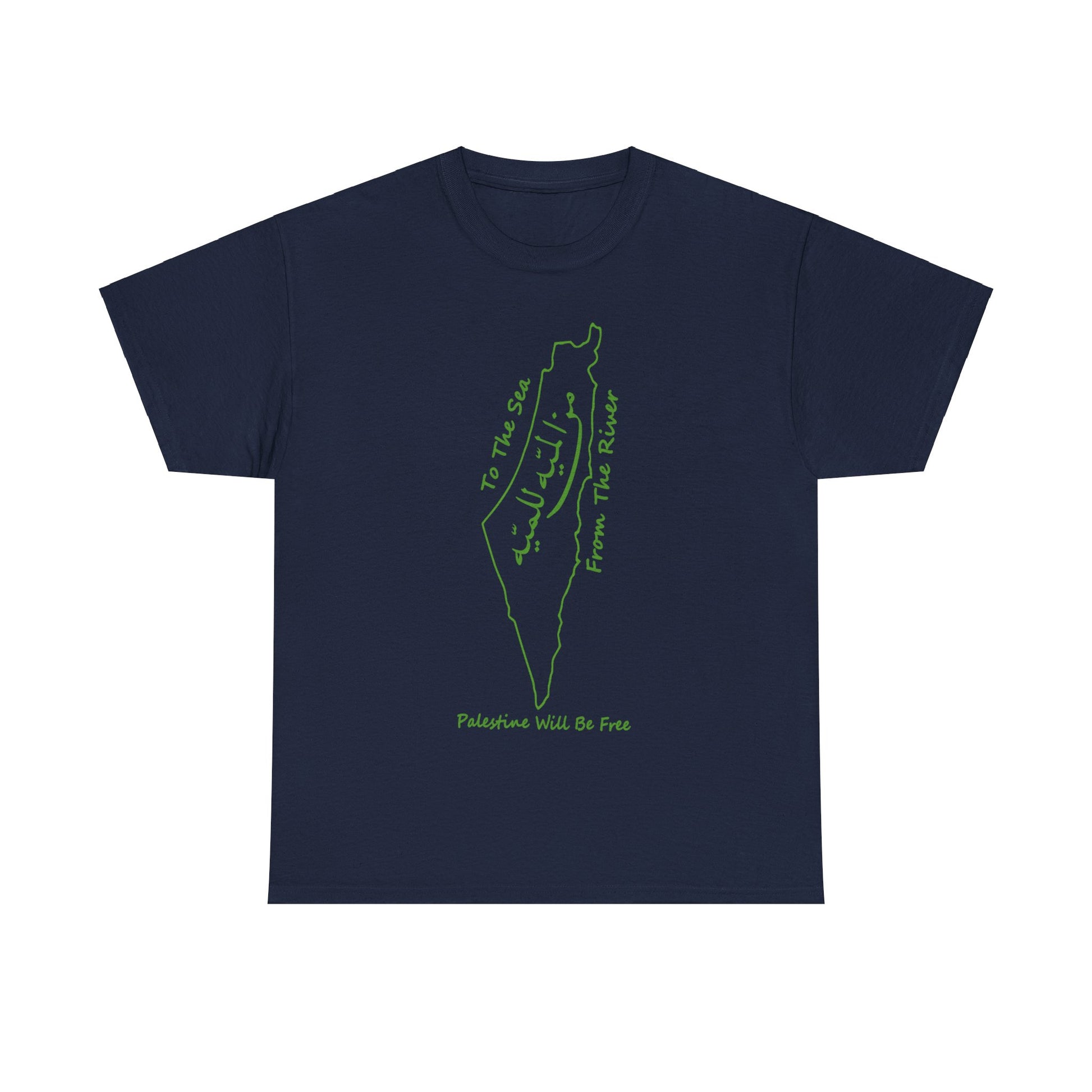 Wear your support for Palestinian freedom with this powerful statement t-shirt. Featuring a bold map of Palestine with the iconic slogan "From the River to the Sea," this design is a symbol of solidarity with the Palestinian people in their struggle for liberation and self-determination. This t-shirt is more than just clothing; it's a conversation starter. It's a way to raise awareness about the Palestinian cause and show your support for a just and lasting peace. Join the movement for Palestinian freedom.
