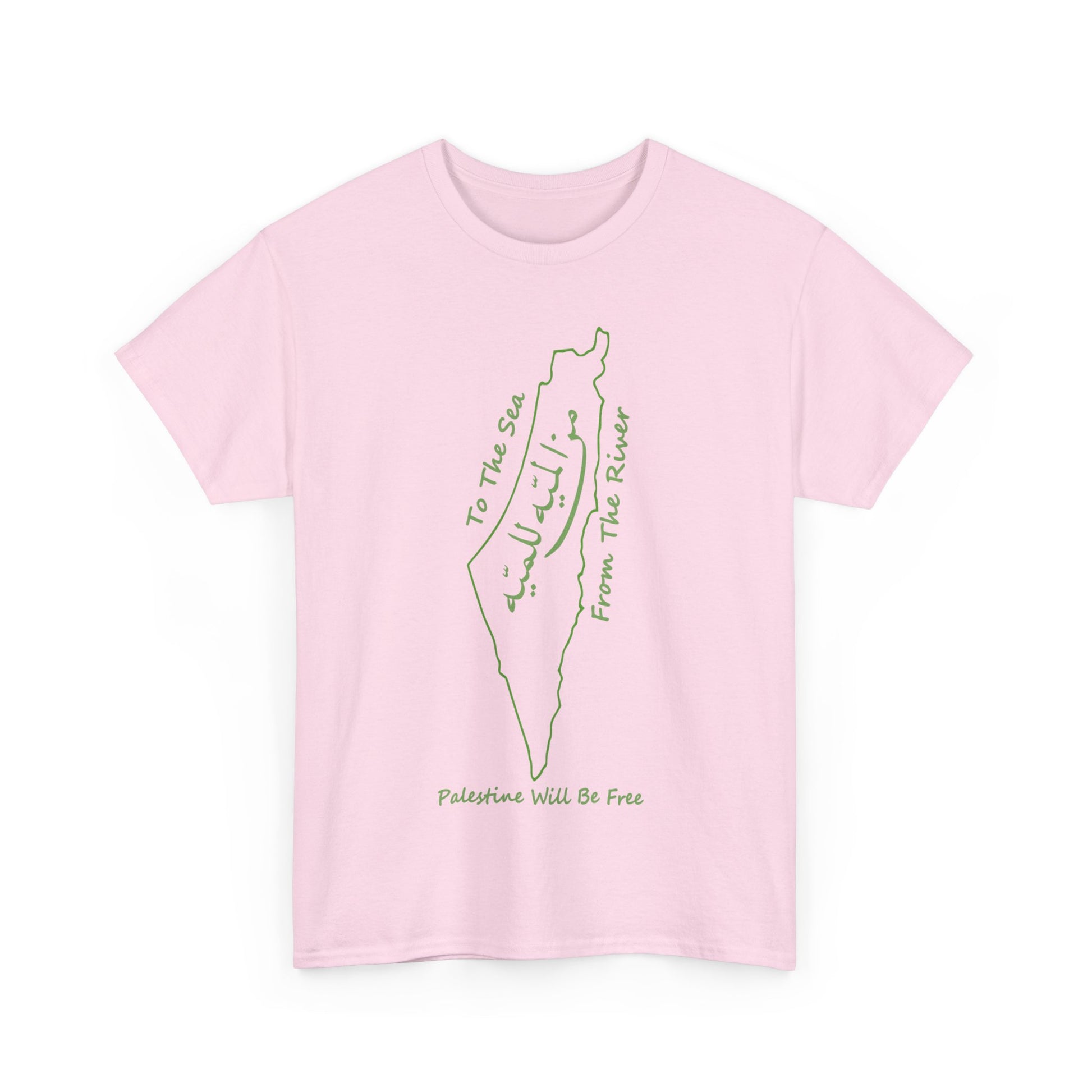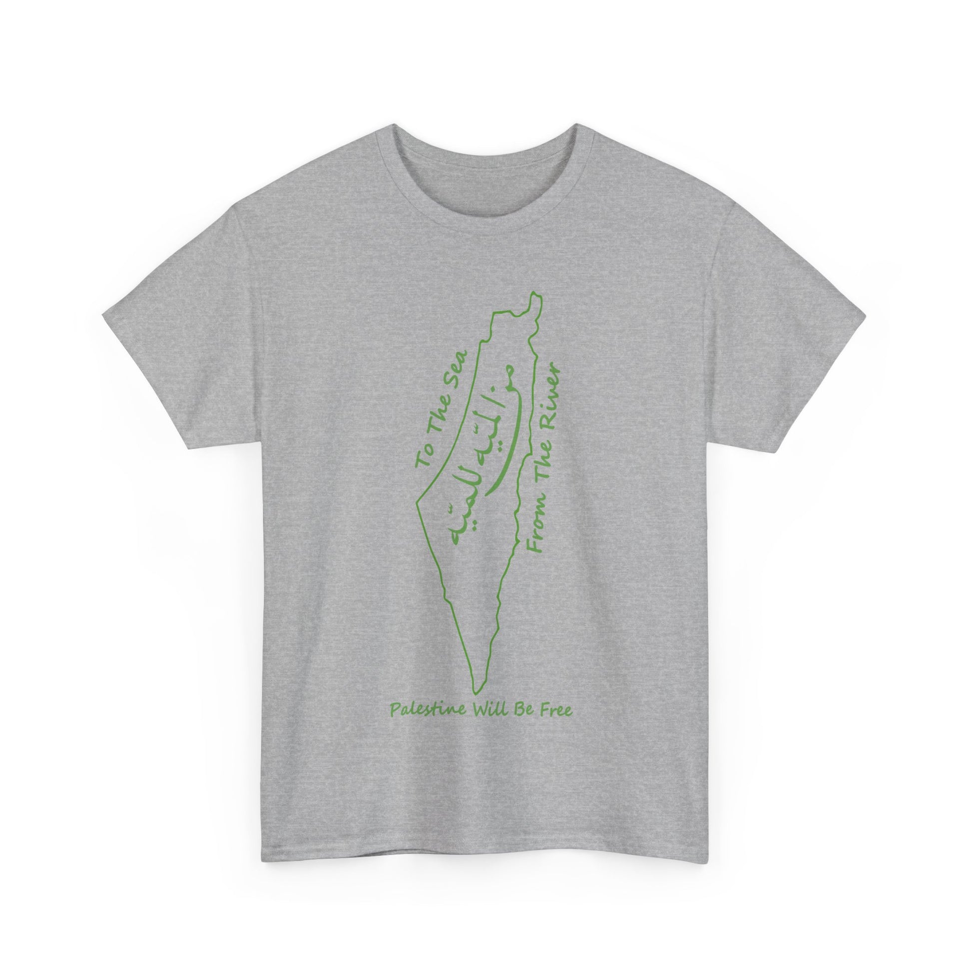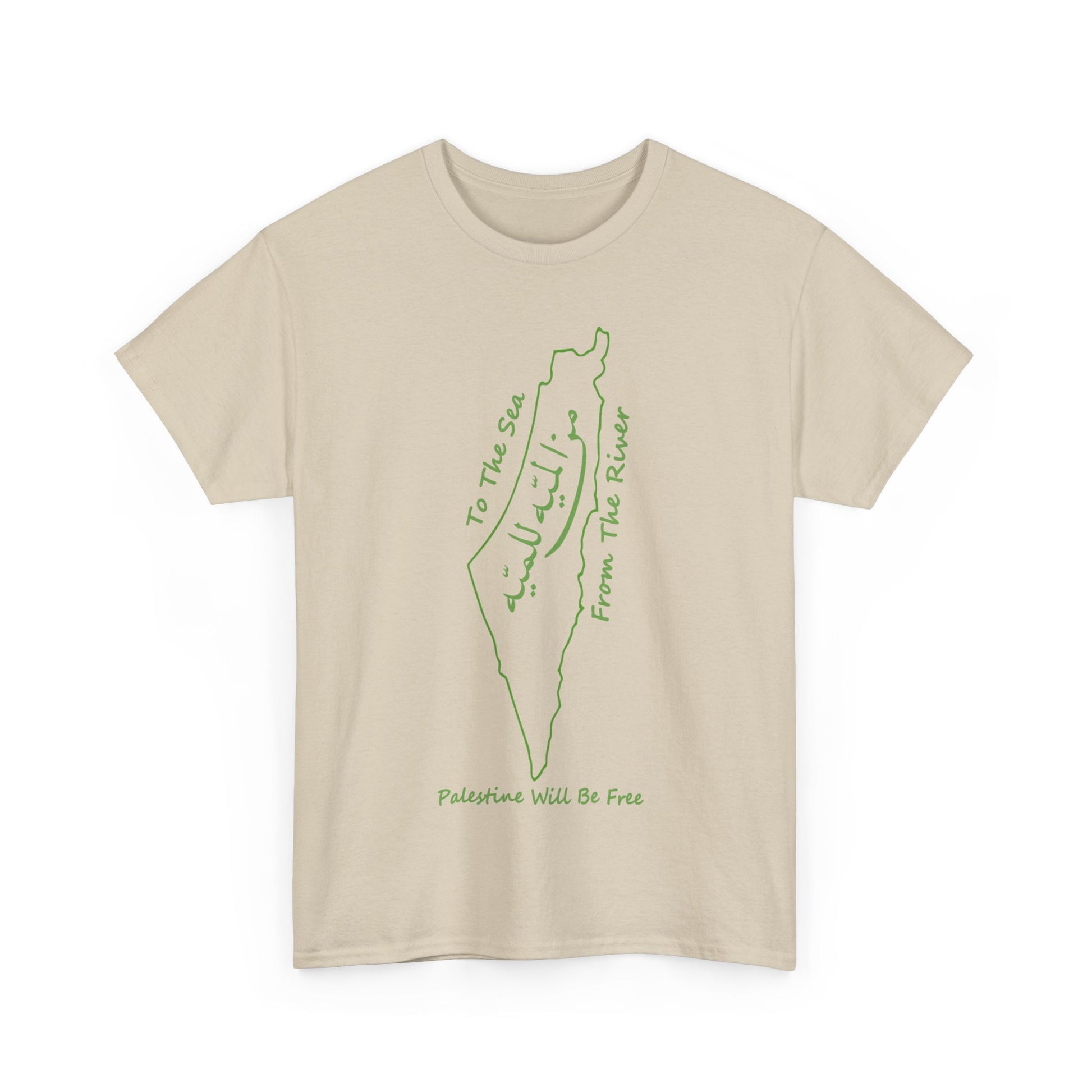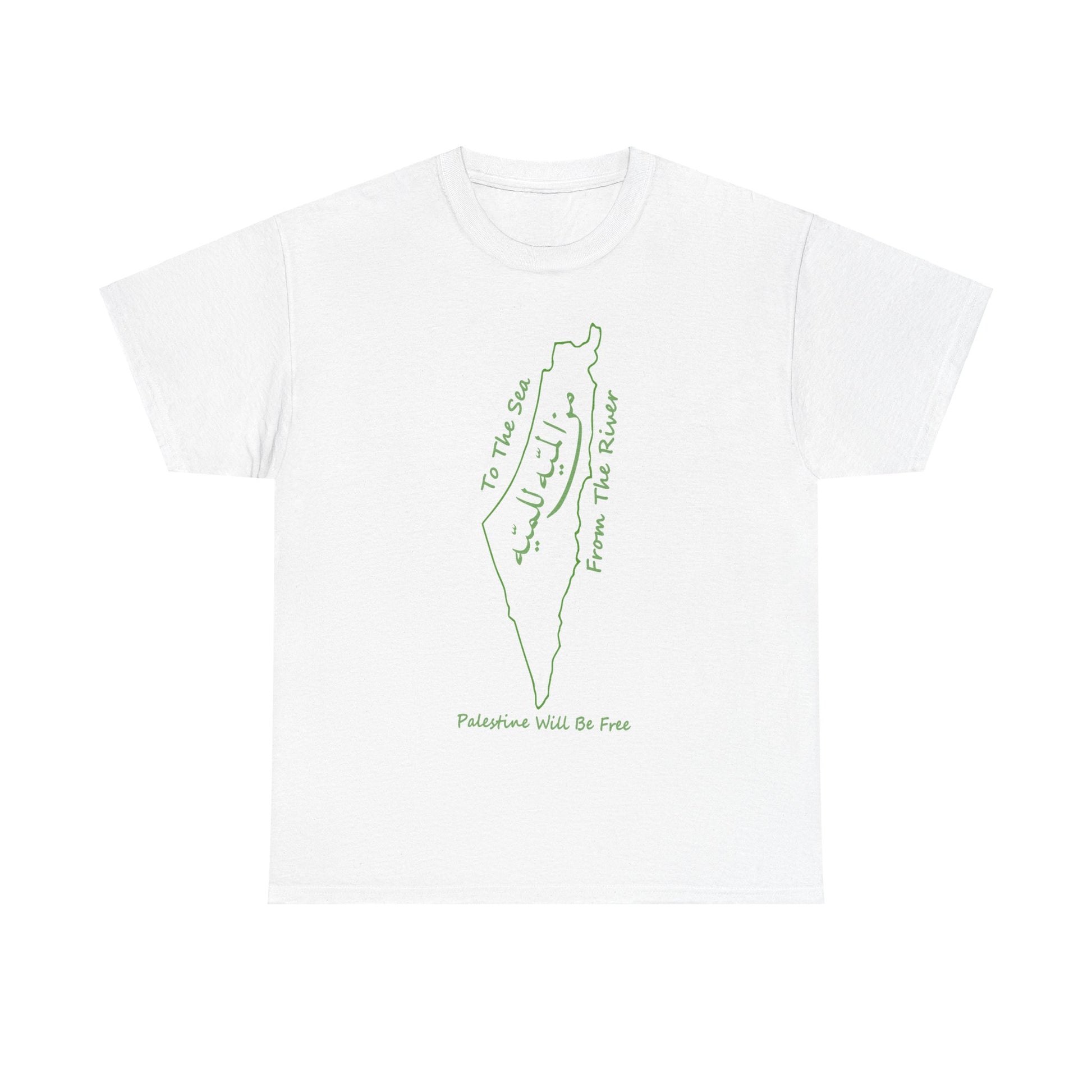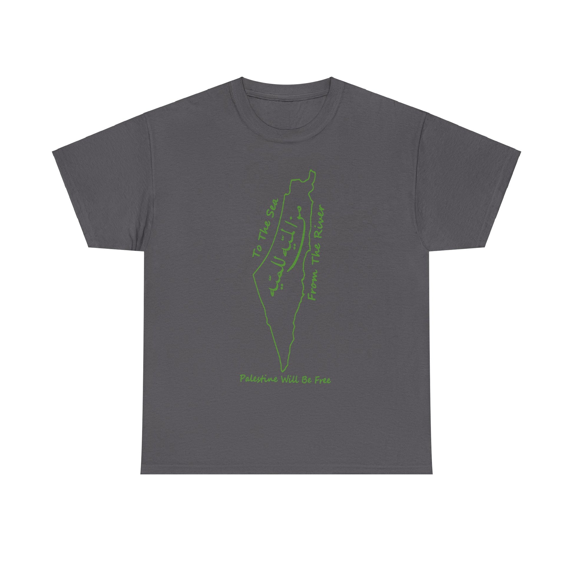 Wear your support for Palestinian freedom with this powerful statement t-shirt. Featuring a bold map of Palestine with the iconic slogan "From the River to the Sea," this design is a symbol of solidarity with the Palestinian people in their struggle for liberation and self-determination. This t-shirt is more than just clothing; it's a conversation starter. It's a way to raise awareness about the Palestinian cause and show your support for a just and lasting peace. Join the movement for Palestinian freedom.