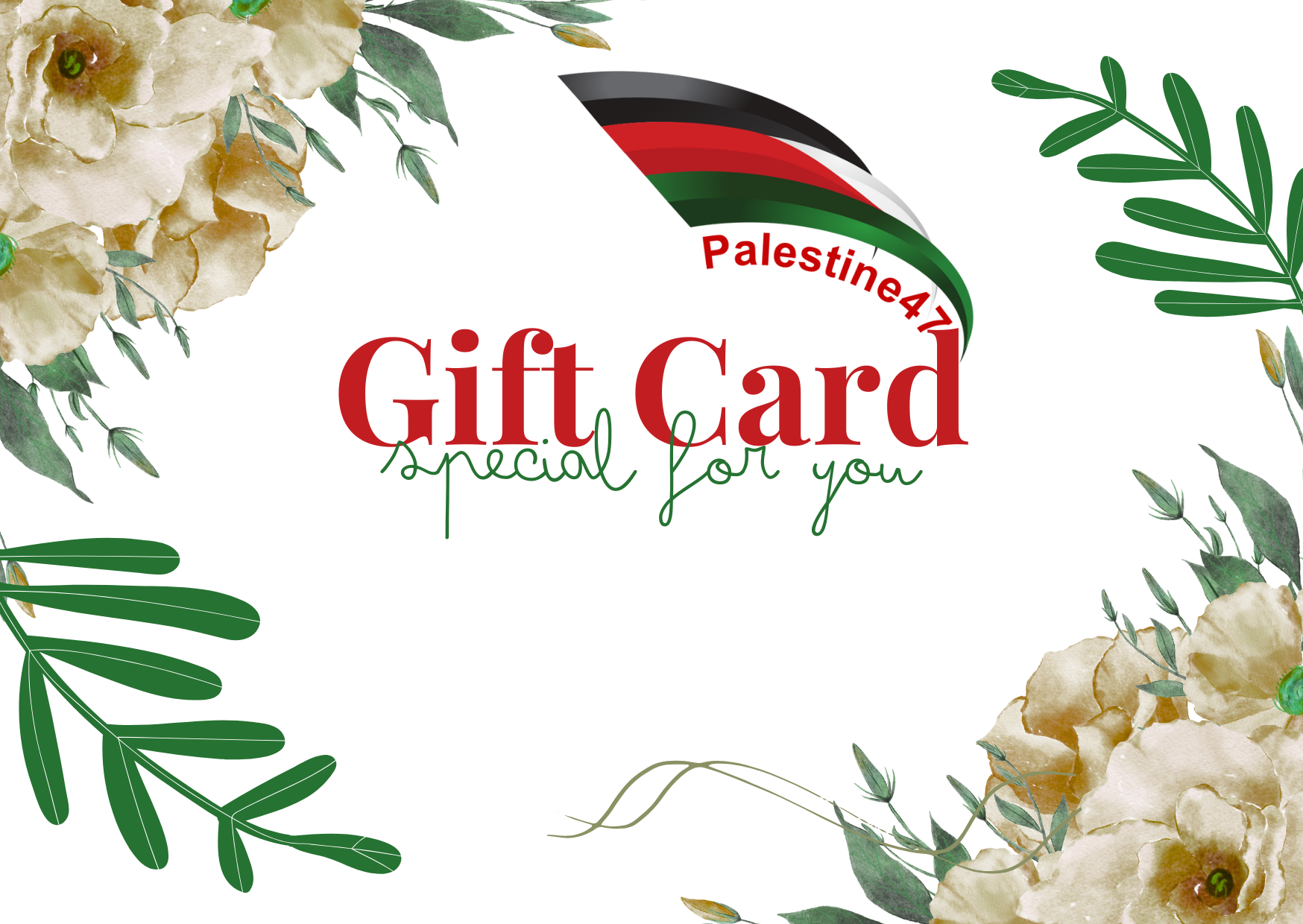 The Palestine47 Gift Card is a convenient and versatile gift option for any occasion. With this gift card, recipients can choose from a wide range of products, making it the perfect way to show someone you care. Give the gift of choice and convenience with the Palestine47 gift card.